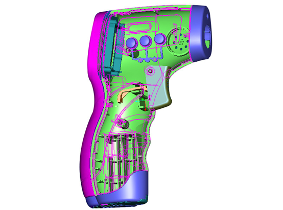 隨著世界疫情的的持續擴散,電子體溫槍的需求不斷再加大。一款好的電子體溫槍模具設計應該注意那些細節呢,體溫槍外殼注塑又有那些技術要求呢,水蜜桃着色入口模具就這個話題來討論一下。
