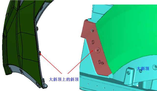 扣位采用在直頂上做隧道彈塊的結構進行脫模: